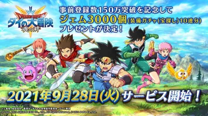 スクウェア・エニックスは、Android/iOS用RPG「ドラゴンクエスト ダイの大冒険 -魂の絆-」のサービスを9月28日に開始する。