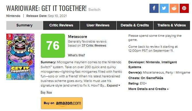 【悲報】『おすそわける メイドインワリオ』メタスコア76点 2021/9/11 Y速報 " " 1: 2021/09/08(水) 22:21:42.21 ID:RoSCR42Xa https://www.metacritic.com/game/switch/warioware-get-it-together! おすそわける メイド イン ワリオ -Switch 任天堂 2021-09-10 続きを読む Source: Y速報