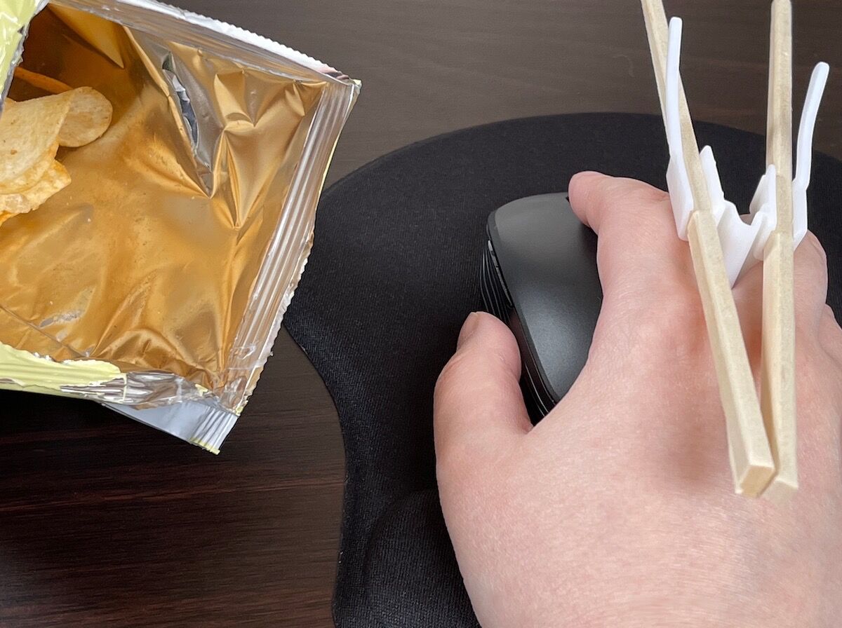 か、画期的!? パソコン中やゲーム中の “ながら食べ” がはかどる「ゲーミング割りばしホルダー」は天才なのか、それとも