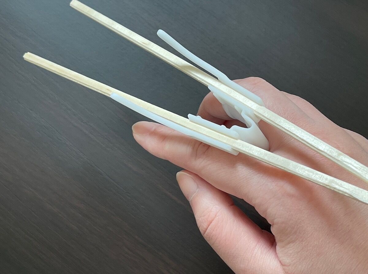 まるで指の延長のように、割りばしを装着できる。『シザーハンズ』誕生!