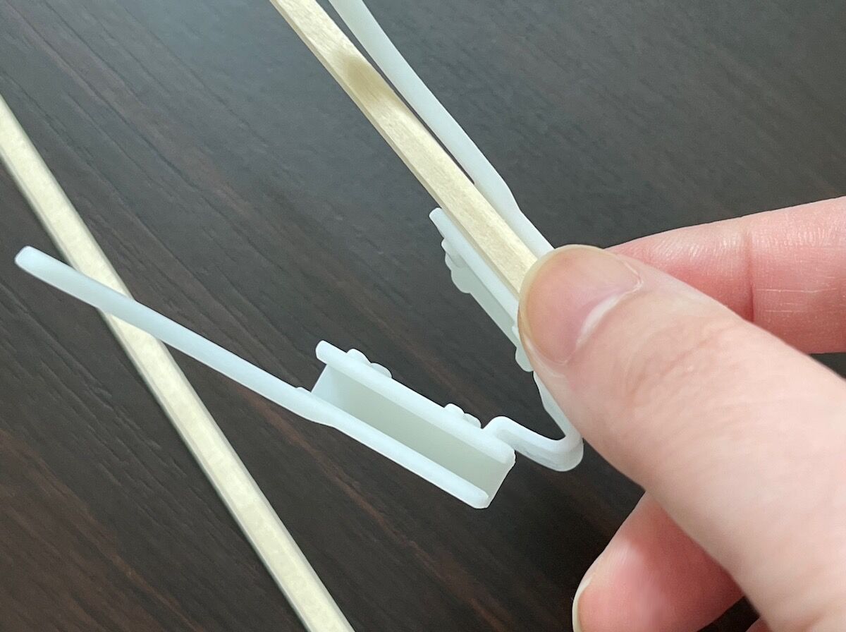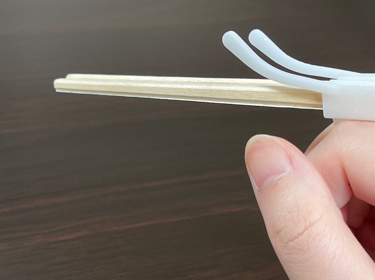 使用する割りばしには向き不向きがある。円形や楕円形の割りばしは安定しない場合があるとのこと。