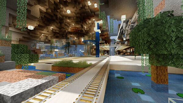 Minecraftカップ2020全国大会 大賞 浦添 昴さん(小5)の作品「未来への5つの約束 ~キレイな水と渓谷の洞窟学校~」