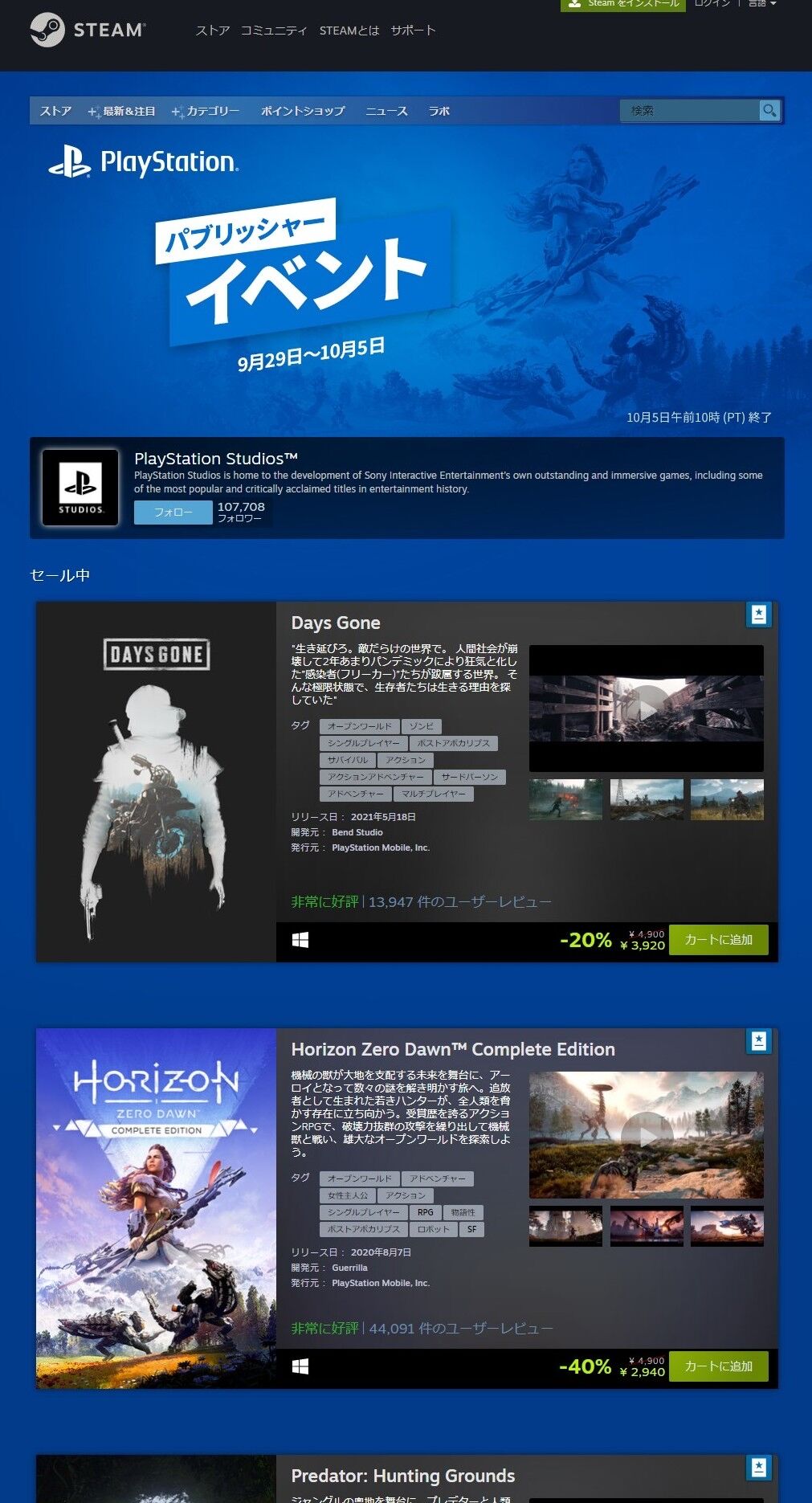 【朗報】Steamでプレイステーションパブリッシャーイベント開催中 2021/10/2 Y速報 " " 1: 2021/10/01(金) 11:24:43.56 ID:bNCRg1+80 続きを読む Source: Y速報