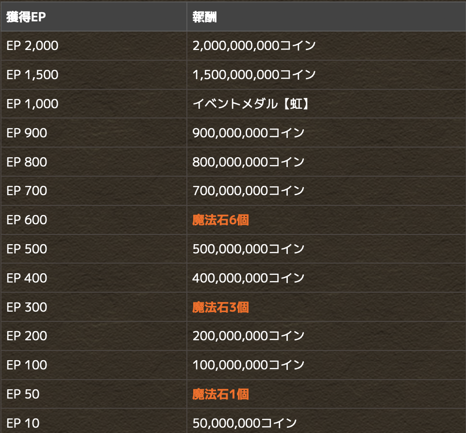 獲得したEPは「氷極ファガンカップ」のEPとして累積され、貯まったEPに応じて魔法石や大量のコインなどの「EP報酬」をゲットできるぞ!