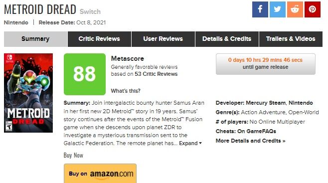 『メトロイドドレッド』、メタスコア88点の良ゲー評価 2021/10/7 Y速報 " " 1: 2021/10/06(水) 22:06:04.53 ID:8bbSWbJVd https://www.metacritic.com/game/switch/metroid-dread 続きを読む Source: Y速報