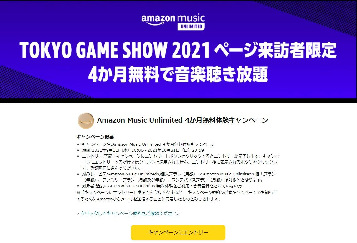Amazon内の「東京ゲームショウ 2021 オンライン」特設サイトからエントリーすることで4か月無料でご使用できます。