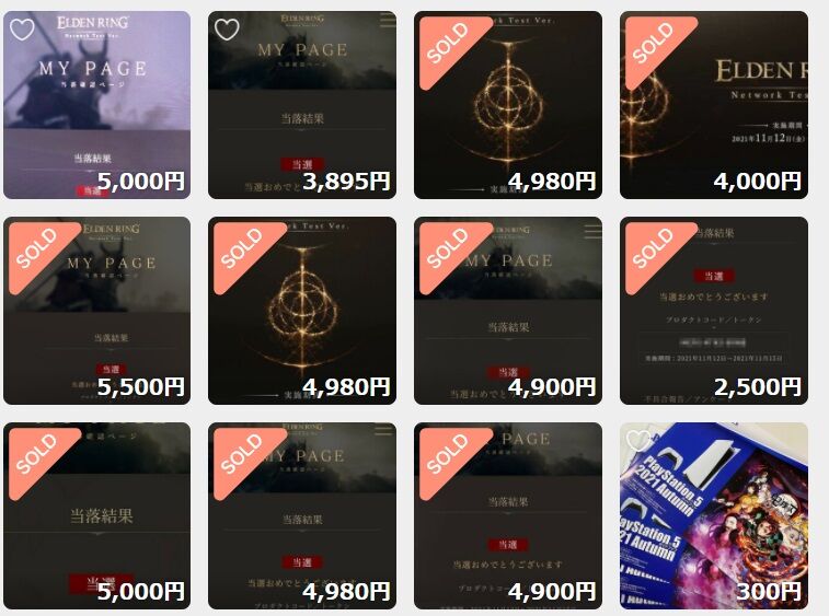 参加用のプロダクトコード/トークンがメールを通して確認できるようになっていますが、早くも「メルカリ」や「ヤフオク!」、「PayPayフリマ」などのマーケットサイトにて出品が確認されています。本ネットワークテストの注意事項には、「本テストの当選権利およびネットワークテスト用ゲームデータを他人に売買、転売することを禁止いたします」との記載があり、これは明確な規約違反にあたります。