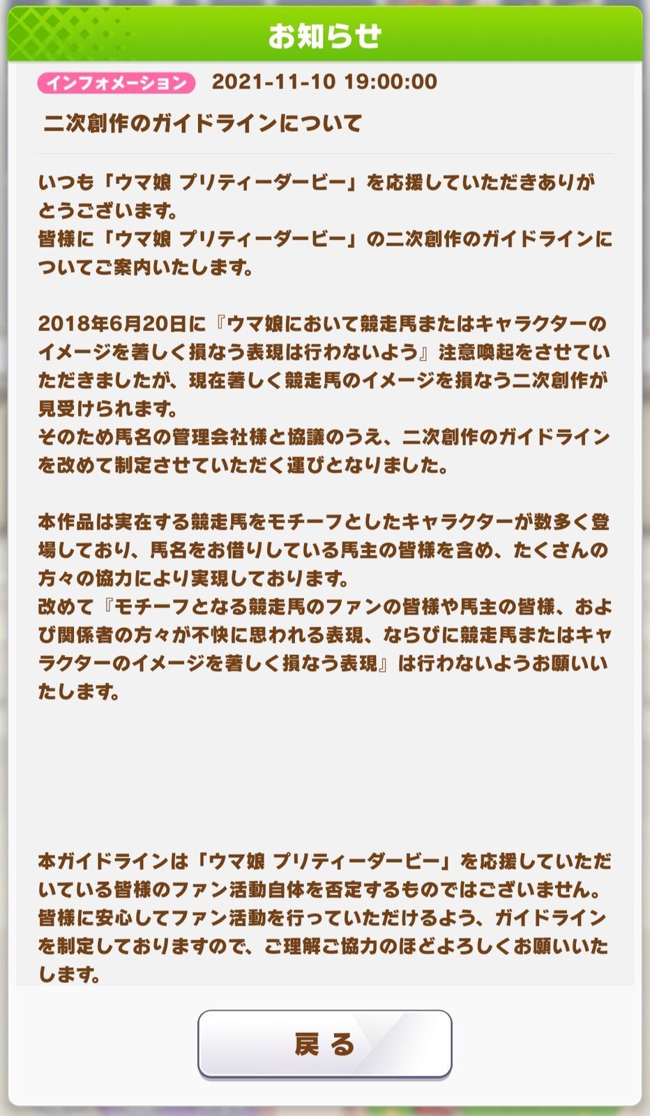 ウマ娘公式、ハッキリと二次創作禁止を宣言