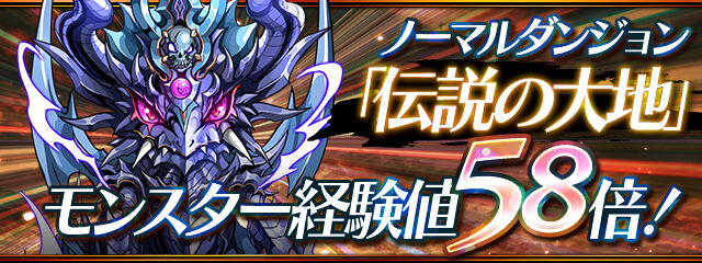 期間中、ノーマルダンジョン「伝説の大地」のモンスター経験値が58倍にアップ!