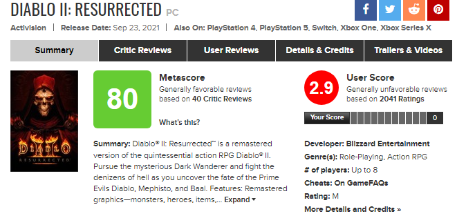 【悲報】洋ゲーの大企業さん、逝く 2021/11/21 Y速報 " " 1: 2021/11/21(日) 05:46:32.18 ID:AMFaCWm50 ロックスター GTAリマスター ユーザースコア0.9 EA BF2042 ユーザースコア2.3 Blizzard Diablo2リマスター ユーザースコア2.9 Bethesda SkyrimAE ユーザースコア1.9 もう和ゲーとインディーの時代やね 続きを読む Source: Y速報
