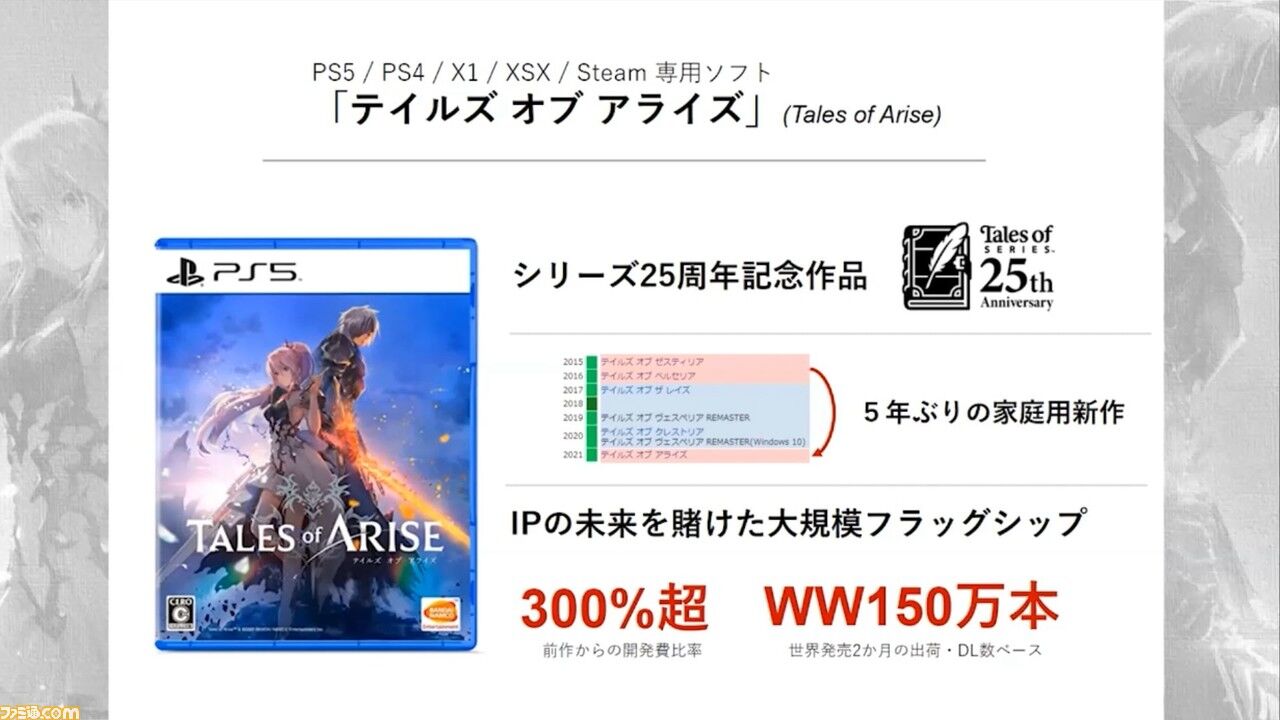 『テイルズ オブ アライズ』は当初2020年発売予定だったが、2021年発売となったのもそこが理由のひとつだという。