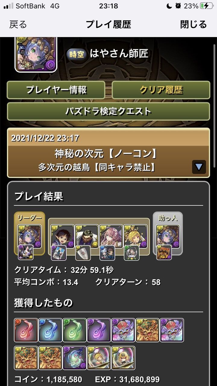 四次元に引き続き多次元も初日クリア出来ました!!次は称号チャレンジ頑張ります💪(‘ω’💪)#パズドラ#多次元の越鳥 pic.twitter.com/IL54Kq4hes— はやさん (@HGMT_pad) December 22, 2021