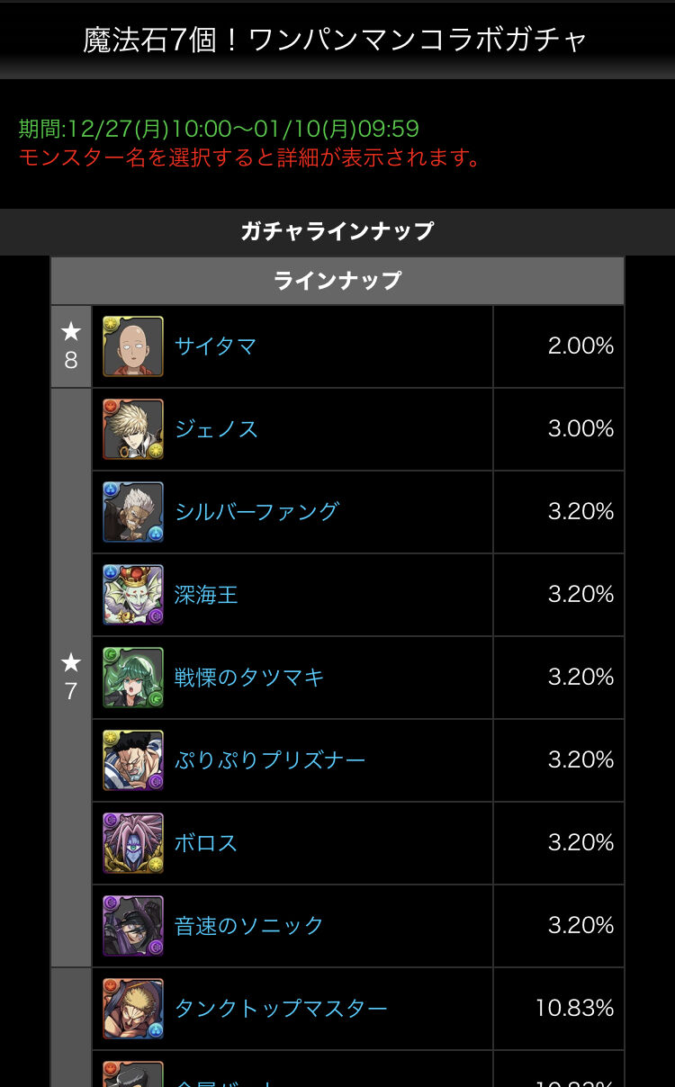 【パズドラ速報】ワンパンマンコラボガチャの的中率が判明!【公式】