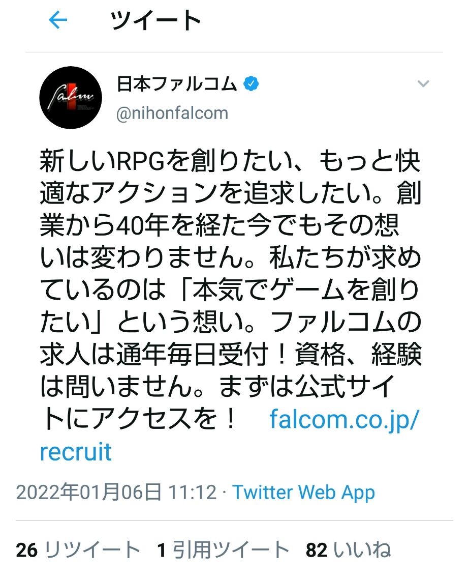 新しいRPGを創りたい、もっと快適なアクションを追求したい。創業から40年を経た今でもその想いは変わりません。私たちが求めているのは「本気でゲームを創りたい」という想い。ファルコムの求人は通年毎日受付!資格、経験は問いません。まずは公式サイトにアクセスを!