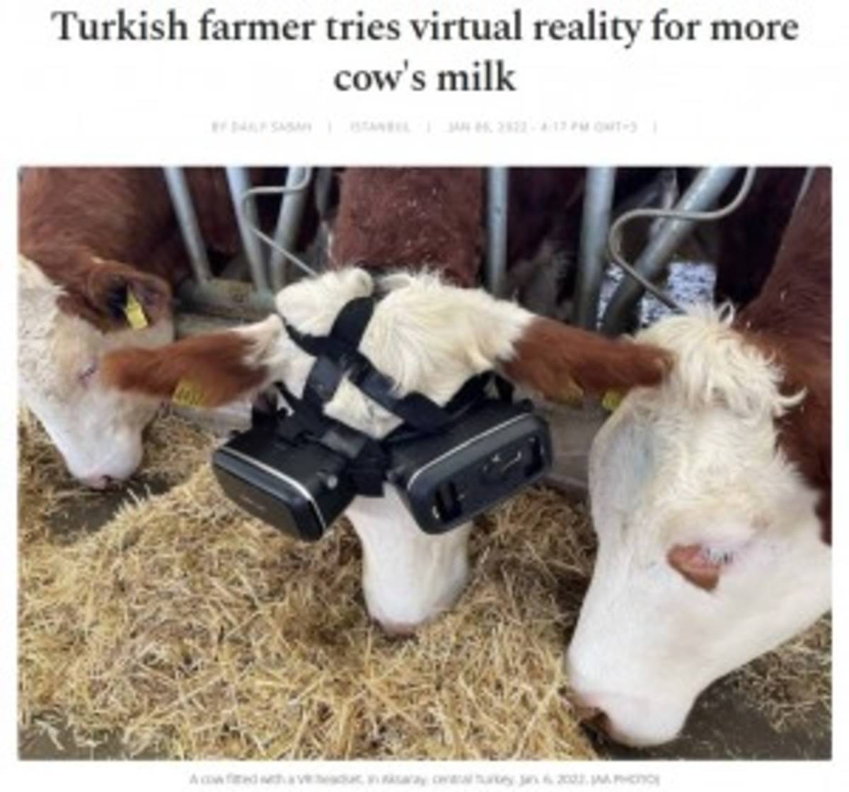 その実験内容は牛にVRゴーグルをつけ、広い草原にいるかのような光景を見せるというものだ。VRゴーグルは装着して好きな映像を映し出すことにより、まるでその場にいるかのような臨場感を味わえる。