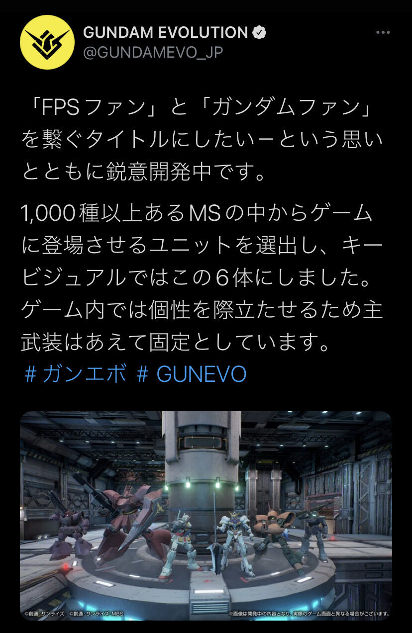 ゲーム内では個性を際立たせるため主武装はあえて固定としています。#ガンエボ #GUNEVO pic.twitter.com/LwB3AATiz3— GUNDAM EVOLUTION (@GUNDAMEVO_JP) November 2, 2021
