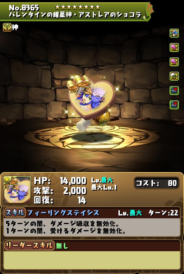 今回の「確定 バレンタインアストレアガチャ」で出現するモンスターは全て、HP/攻撃/回復のいずれかに+99がついた状態で排出されるぞ!