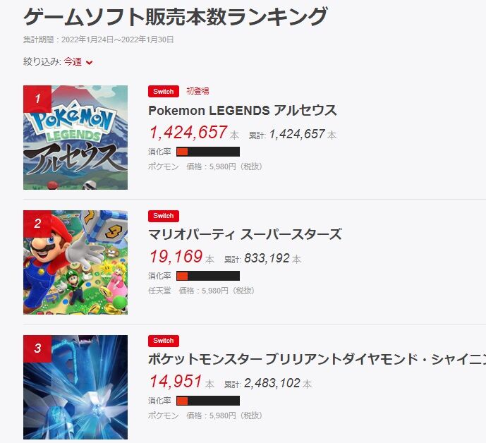 [02/04]ファミ通TOP30更新 2022/2/5 Y速報 " " 1: 2022/02/04(金) 11:00:39.75 ID:LFsiH7L+0 https://www.famitsu.com/ranking/game-sales/ 続きを読む Source: Y速報