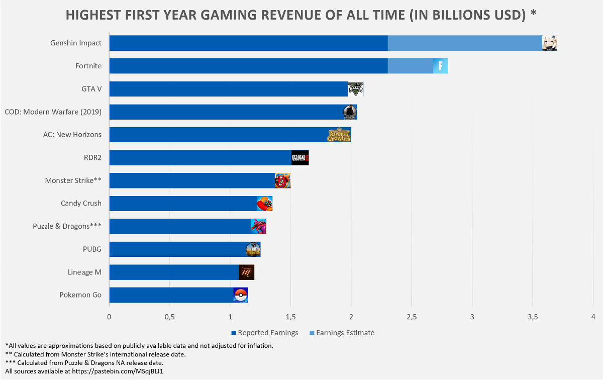 Genshin Impact tops the list for the Highest First Year Gaming Revenue of All Time : Genshin_Impact