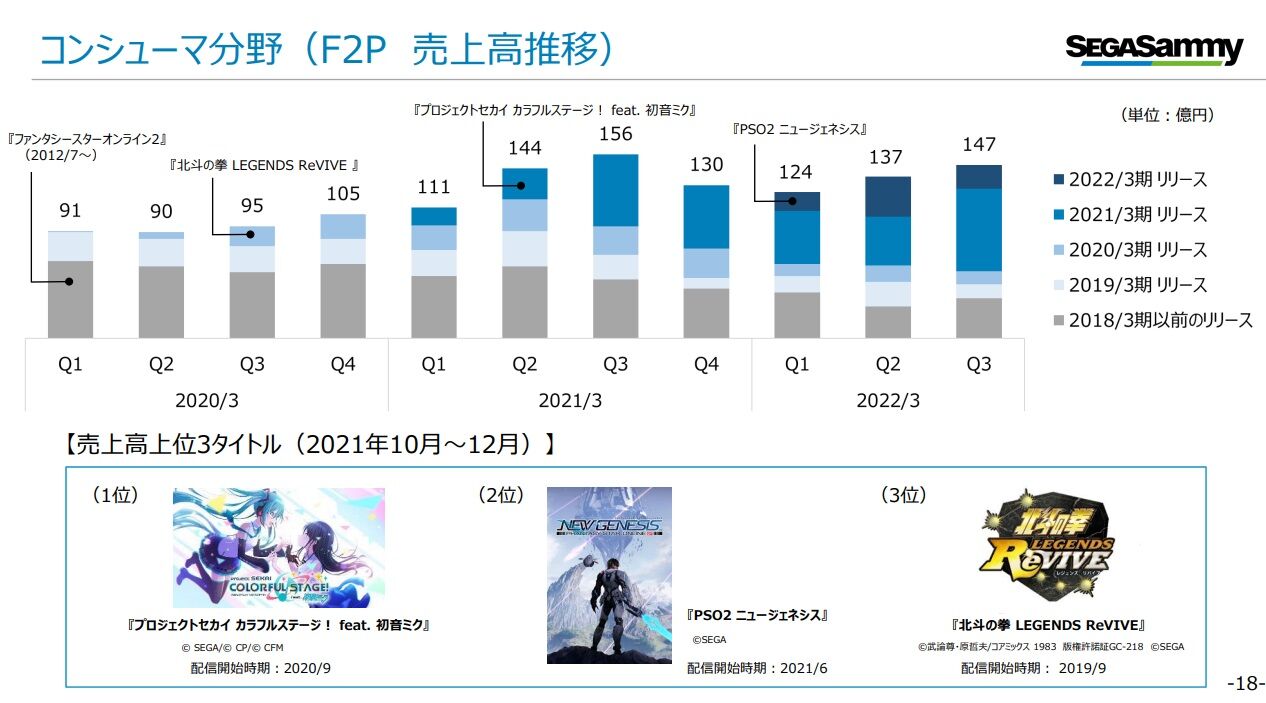 • 『プロジェクトセカイ カラフルステージ! feat. 初音ミク』 が好調に推移