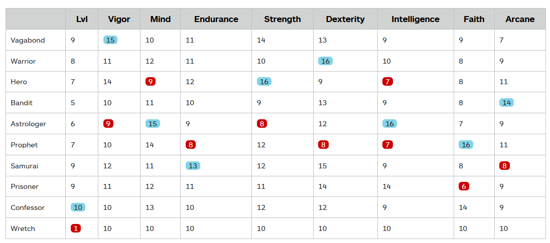【エルデンリング】各素性の初期ステが判明(完全版) 2022/2/11 ダークソウルまとめ速報 " " 187: ID:rL0TiRca0 IGNにいい感じの画像があった。 初期ステータス予想もついに終わりか… 続きを読む Source: ダークソウルまとめ速報