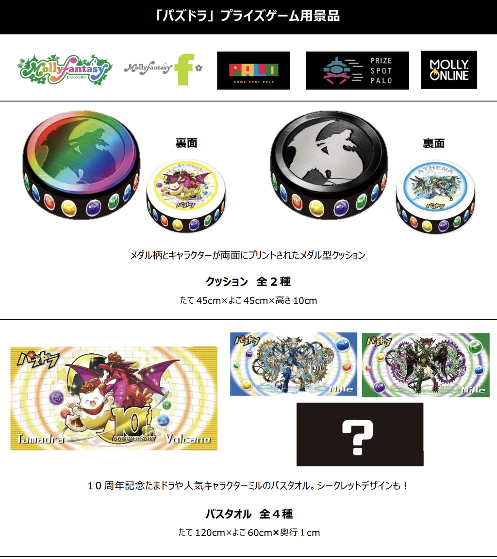 ガンホー・オンライン・エンターテイメント株式会社のパズル RPG『パズル&ドラゴンズ(以下、パズドラ)』のプライズ