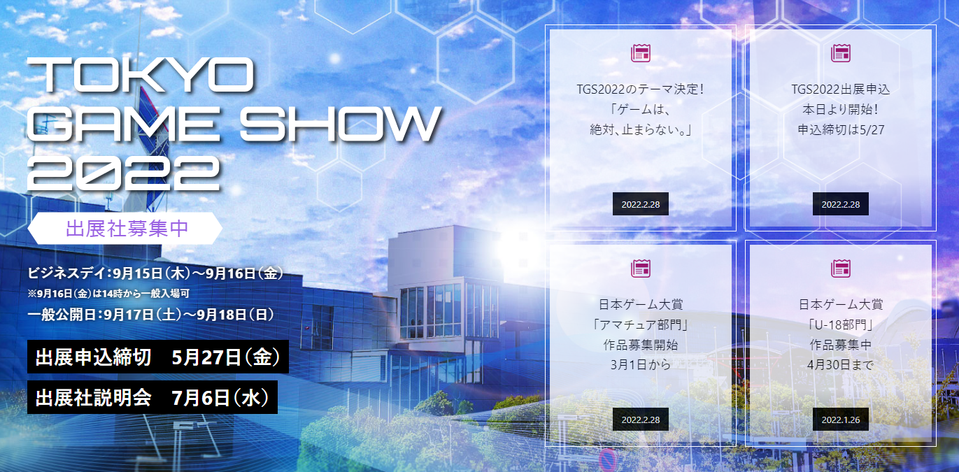 『東京ゲームショウ 2022』9月15~18日に開催決定!今年は一般入場も有り、チケットは7月上旬発売予定 2022/2/28 PS5速報! " " 『東京ゲームショウ 2022』9月15~18日に開催決定!※更新 続きを読む Source: PS4速報!
