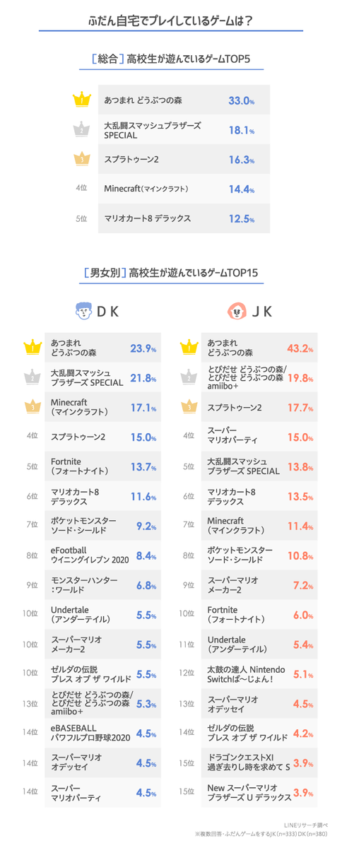 LINEリサーチ、高校生がゲーム機で遊んでいるゲームを開示する 2020/10/14 Y速報 " " 1: 2020/10/13(火) 12:25:41.58 ID:Jd3MthM6d 続きを読む Source: Y速報