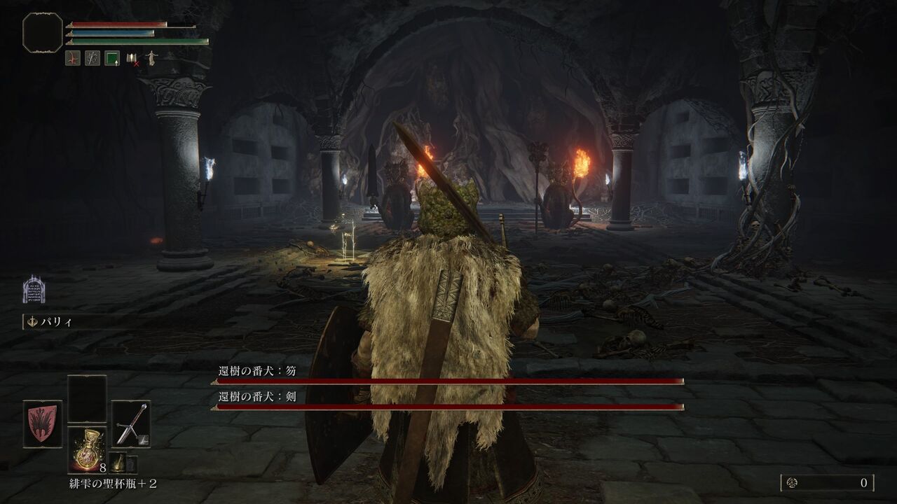 ・雑魚の騎士は軽量武器のR1だと怯まずR2で怯む調整。大型武器ならR1で怯む