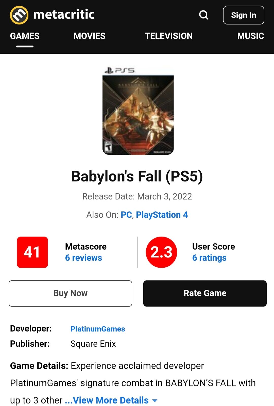 【悲報】バビロンズフォール、メタスコア41ユーザースコア2.3の弩級クソゲー評価に 2022/3/6 Y速報 " " 1: 2022/03/05(土) 07:11:12.35 ID:wA7hZsEU0 どうしてこうなった? 続きを読む Source: Y速報