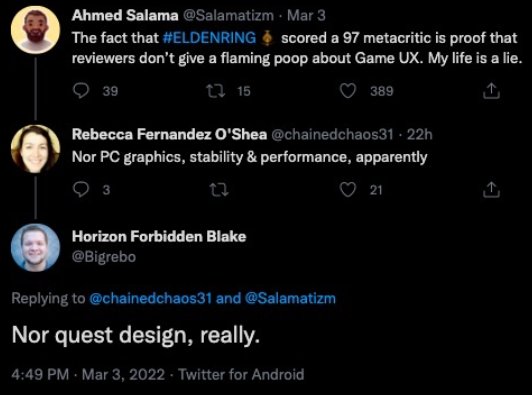Ubisoft UXディレクター「#Eldenring がメタクリティックで97点を取ったという事実は、レビュワーがUXを全く気にしないという証明です」