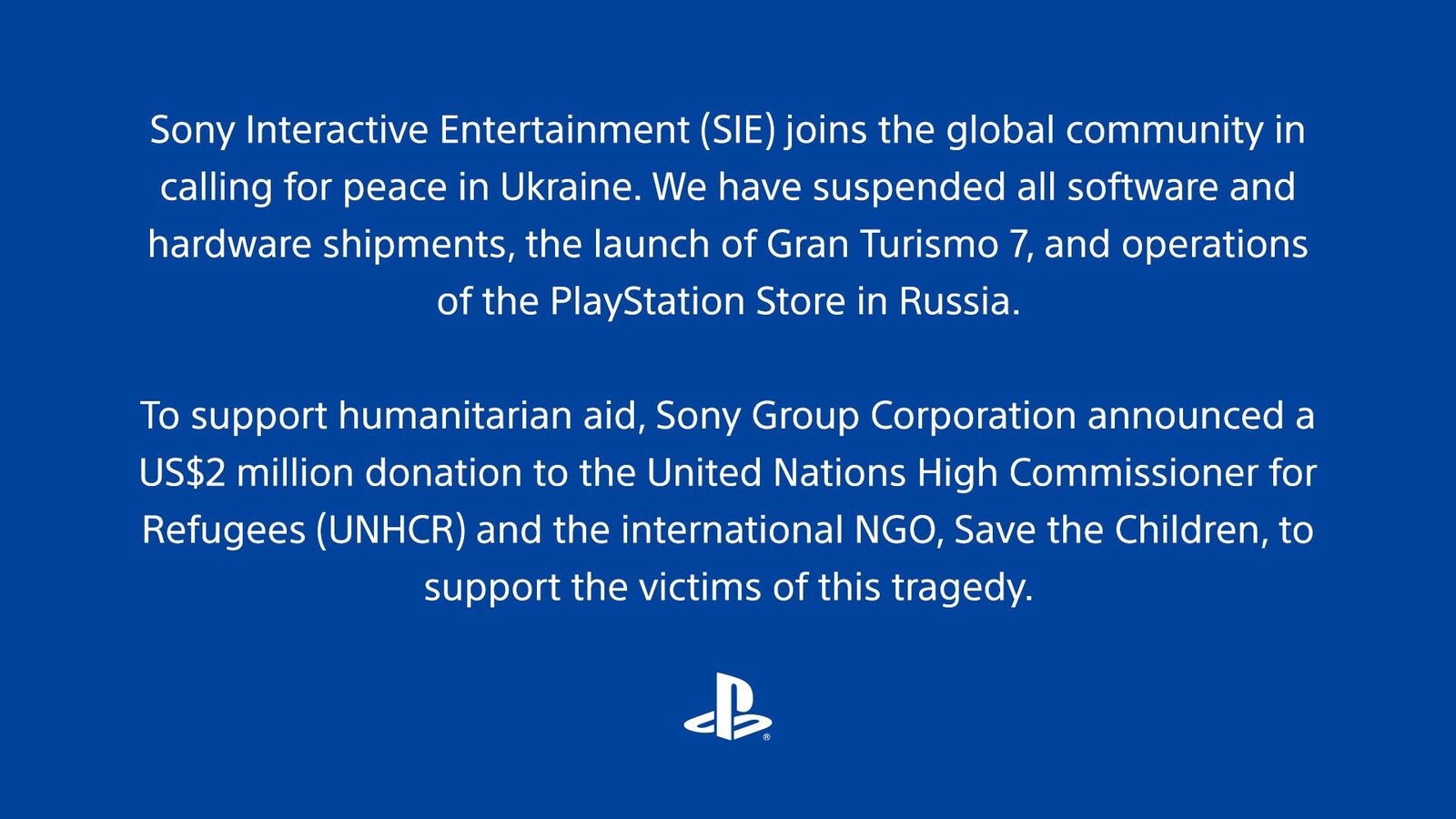 加えて人道的支援として、ソニーグループ株式会社は、国連難民高等弁務官事務所(UNHCR)および国際NGOセーブ・ザ・チルドレンへ合計200万米ドル(約2.3億円)の寄付を実施することを発表いたしました。