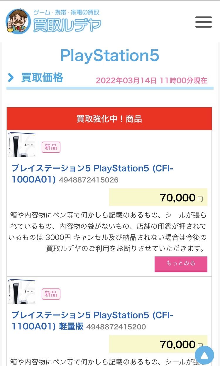 【悲報】PS5買取、大幅下落・・・ 2022/3/14 Y速報 " " 1: 2022/03/14(月) 11:28:05.26 ID:n0bKw1s4d もうソフト需要無いから後は落ちていくだけ・・・ 続きを読む Source: Y速報