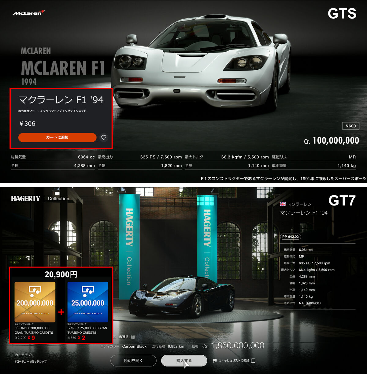 同じ車なのにゲーム内クレジット18.5倍、課金だと68倍!