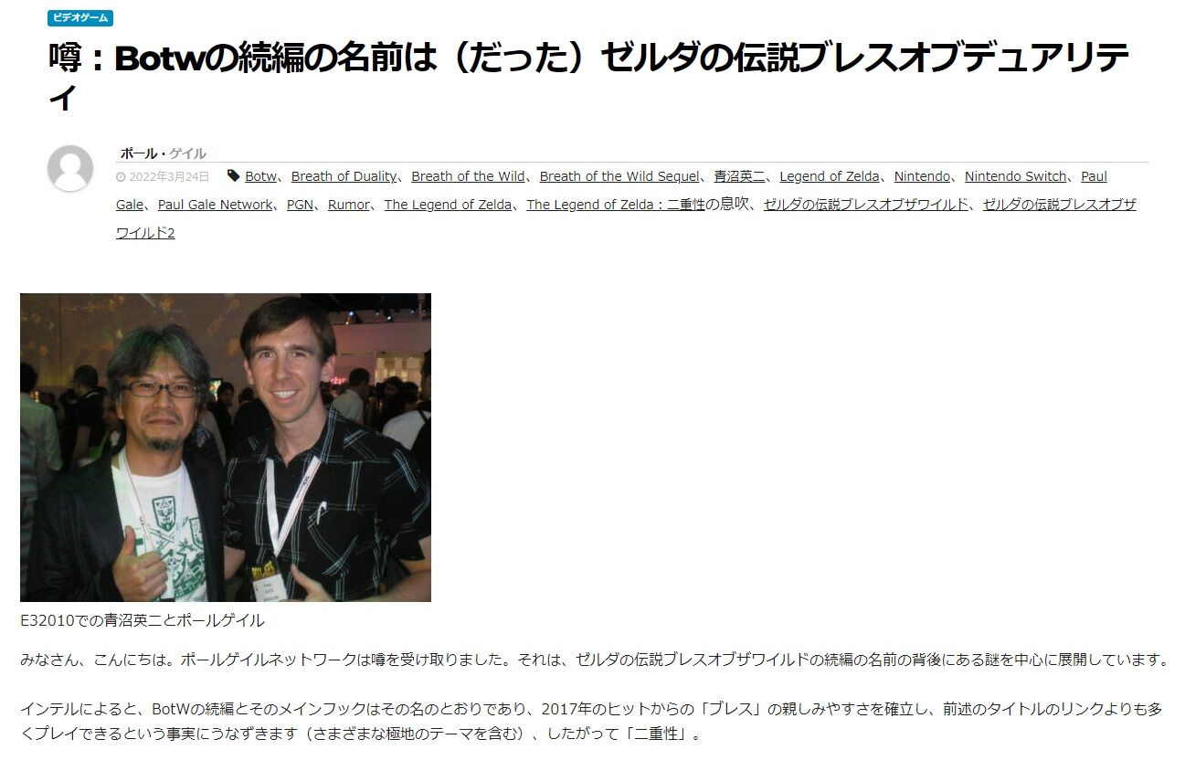 みなさん、こんにちは。ポールゲイルネットワークは噂を受け取りました。それは、ゼルダの伝説ブレスオブザワイルドの続編の名前の背後にある謎を中心に展開しています。