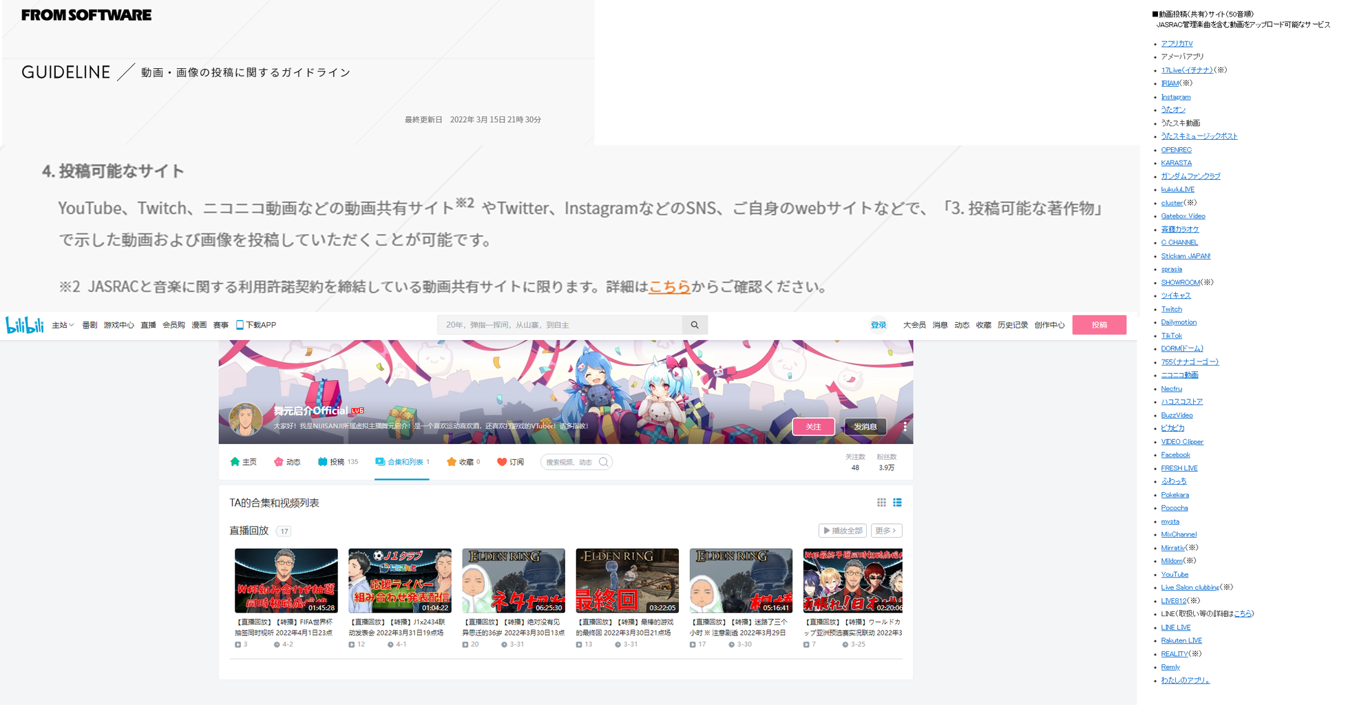 しかし、フロムソフトウェアは、JASRACの利用許諾契約をかわしているサイトへの投稿しか認めていない