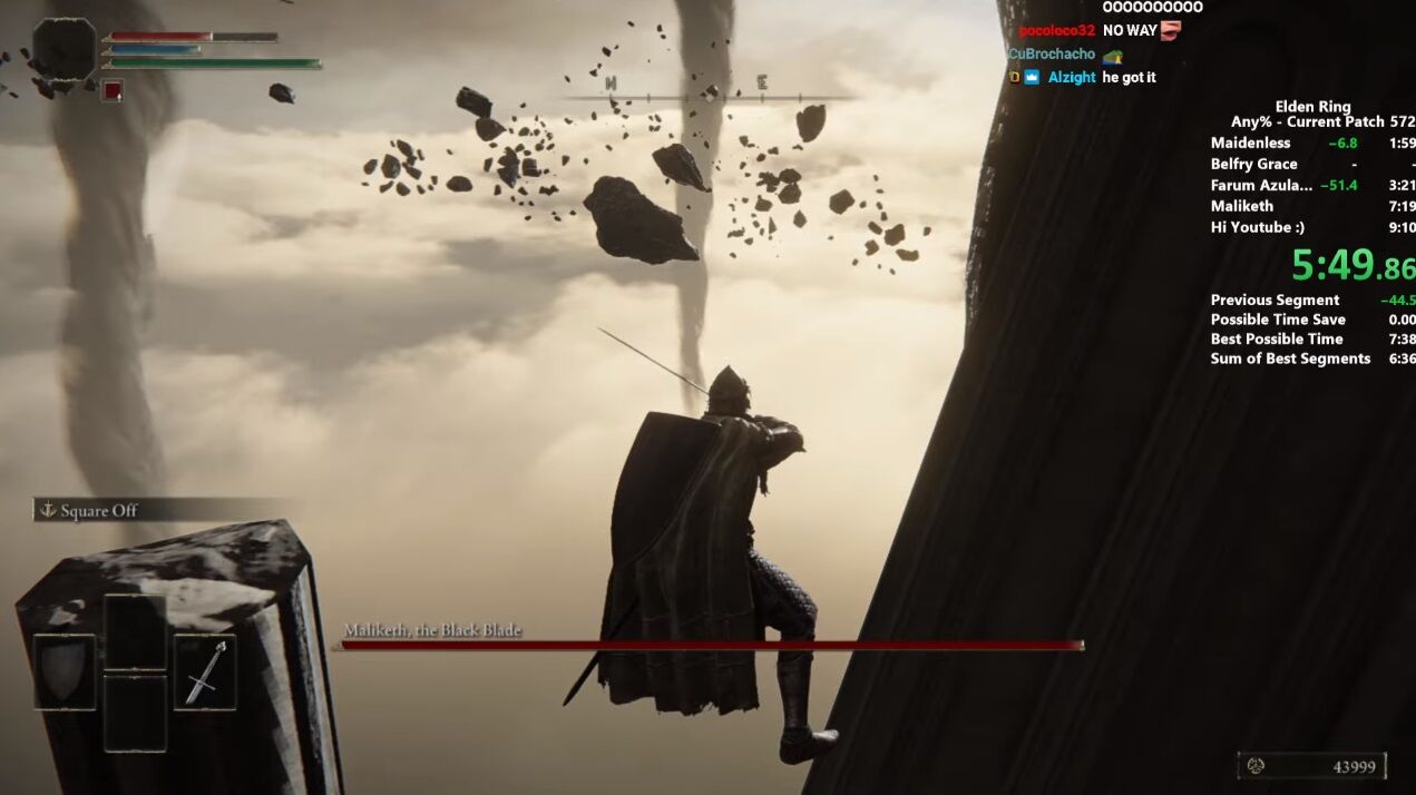 さらには、今までのチャートでは戦わざるを得なかったボスである「黒き剣のマリケス」も、Zip Glitchにてスルー。ほぼ無血にて王の座を獲得している。また、戦闘がなくなったことにより、武器の確保が必要なくなったのも時短に影響したのだろう。また、戦技「霜踏み」の火力に頼る必要がなくなる関係上、最新バージョンでも記録が出せるようになりそうだ。なお、Distortion2氏は7分切りを目指していくとのこと。Zip Glitchの発動率や精度など、まだまだ短縮の余地はあるようだ。