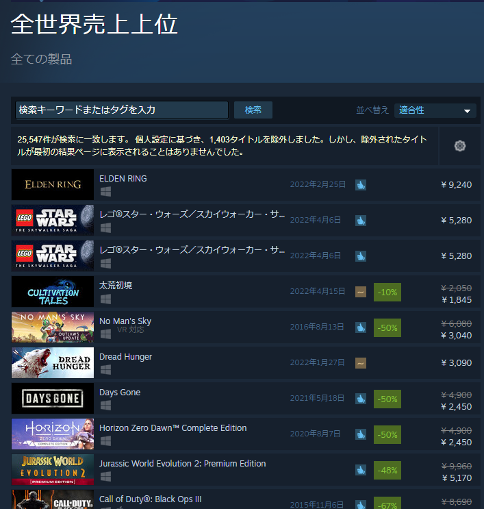 発売から2か月、エルデンリングSTEAM世界売上1位のまま 2022/4/18 Y速報 " " 1: 2022/04/17(日) 06:24:13.68 ID:V4jzkSrU0 https://store.steampowered.com/search/?filter=globaltopsellers 続きを読む Source: Y速報