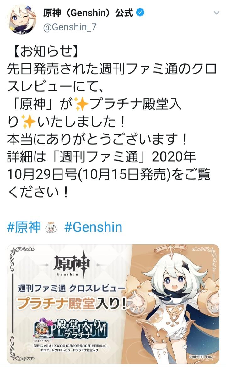 【朗報】ファミ通さん、原神をプラチナ殿堂入りに決定! 2020/10/19 Y速報 " " 1: 2020/10/17(土) 01:45:40.30 ID:ym7ClMzy0 すげぇ 続きを読む Source: Y速報