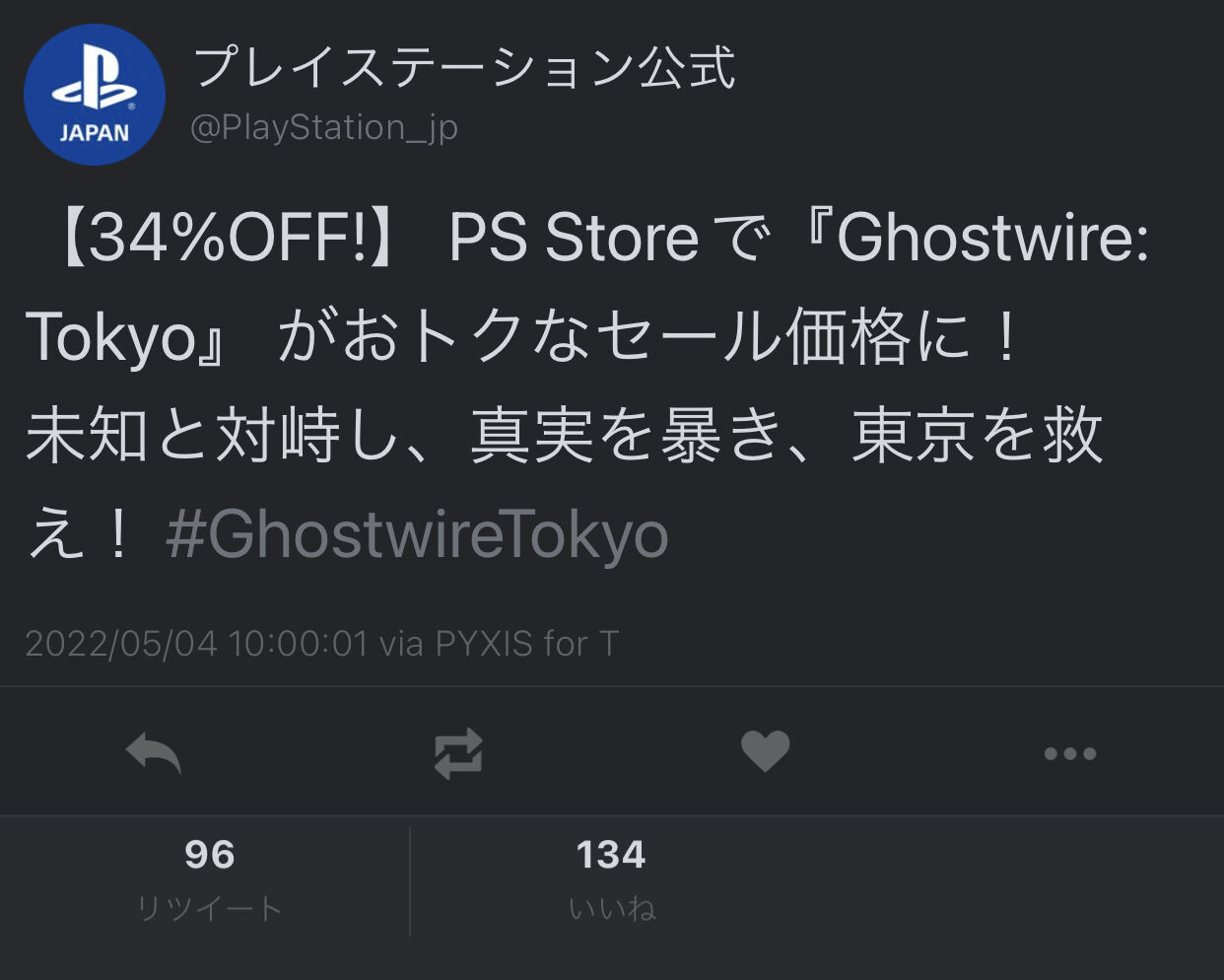 【PS5】Ghostwire: Tokyo、早くも34%オフ! 2022/5/5 Y速報 " " 1: 2022/05/05(木) 18:56:58.44 ID:tDRZ5c4200505 続きを読む Source: Y速報