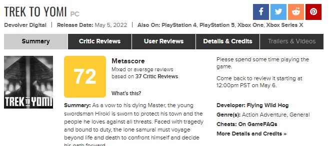 侍映画風のゲーム『Trek to Yomi』 メタスコア74点の評価 2022/5/6 Y速報 " " 1: 2022/05/06(金) 10:11:39.69 ID:npsdkLUY0 PC版は72 続きを読む Source: Y速報