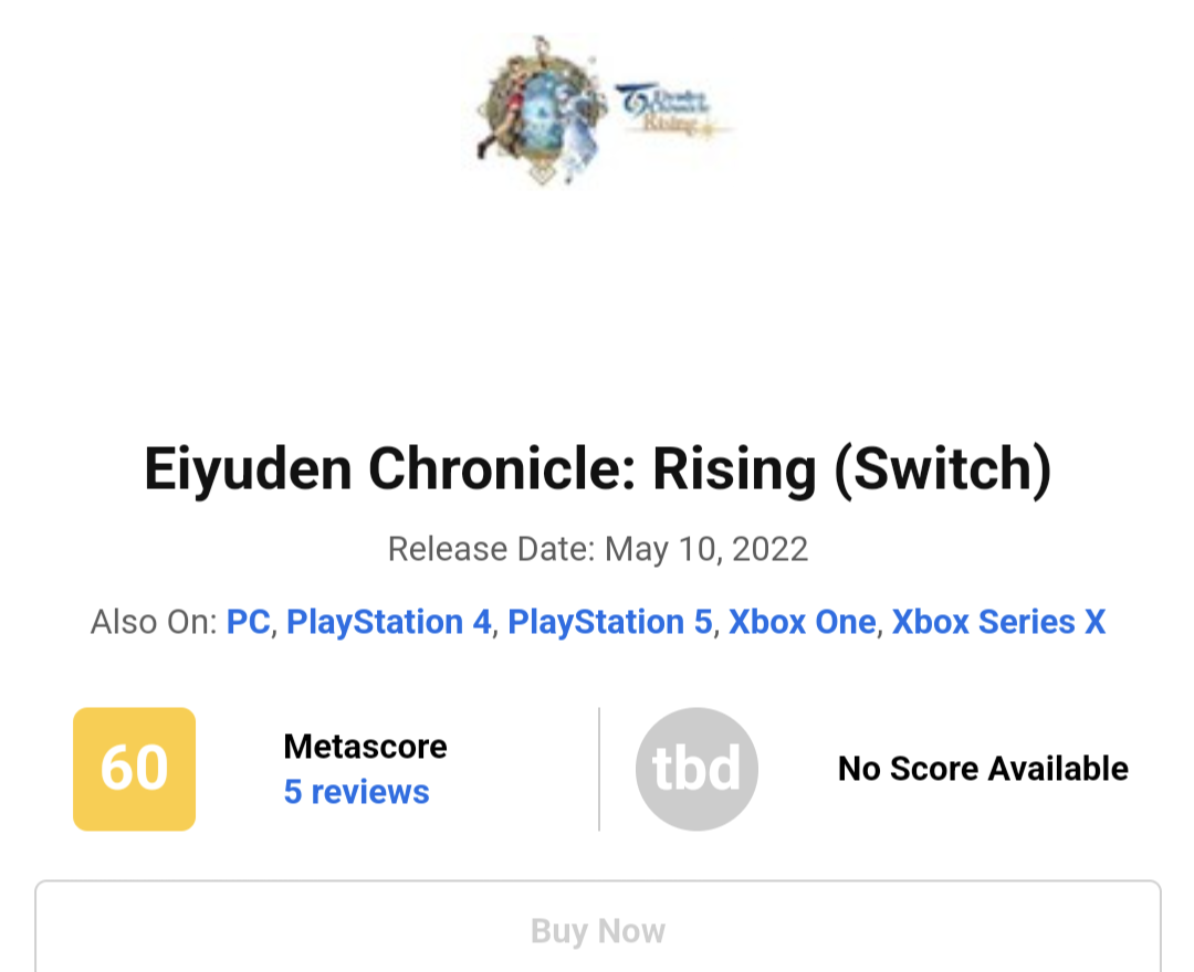 百英雄伝、メタスコア60点の厳しい評価 2022/5/11 Y速報 " " 1:名無しのY速報さん 2022/05/11(水) 10:16:54.40 ID:WesUdEN1a https://www.metacritic.com/game/switch/eiyuden-chronicle-rising 続きを読む Source: Y速報