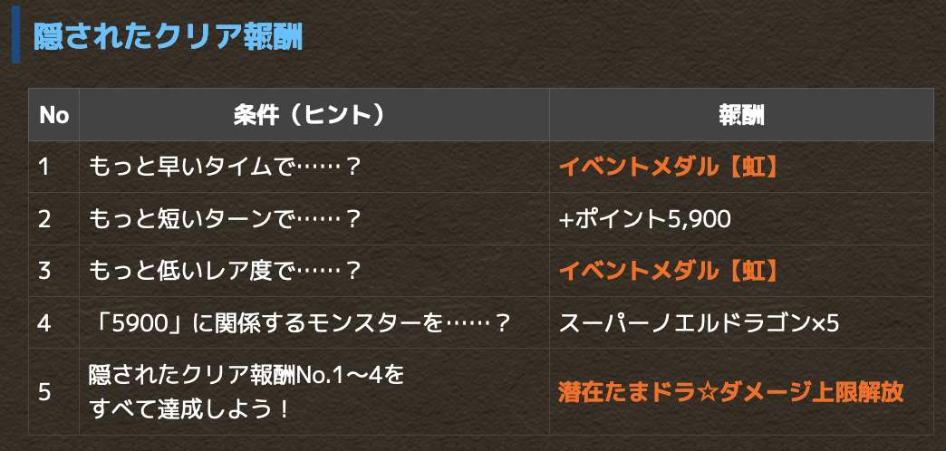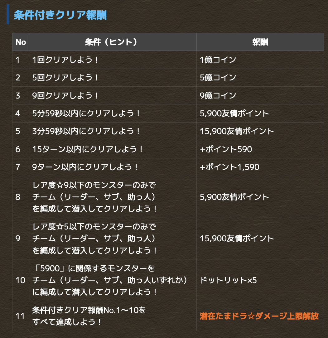【情報求む】隠し要素の条件なに?59クリアチャレンジ開幕キタ━━━━(゚∀゚)━━━━!!【パズドラ】 2022/5/16 オーガch.-パズドラ攻略まとめ速報 " " このダンジョンにはたくさんの「条件付きクリア報酬」が設定されており、条件を達成してダンジョンをクリアすると、様々な報酬がゲットできる!また条件付きクリア報酬の中には、条件が隠されているものもあるぞ! すべての報酬ゲットを目指してチャレンジしてみよう! 続きを読む Source: オーガch.-パズドラ攻略まとめ速報