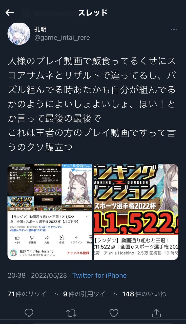【パズドラ】「プレイ動画の転売ヤー」スレ民さんが某Vtuberにガチギレ 2022/5/24 オーガch.-パズドラ攻略まとめ速報 " " 68: おーがちゃんねる 2022/05/24(火) 00:47:17.82 ニア軽く炎上してて草 こんなとこいないで釈明動画出さんでええんか?笑 続きを読む Source: オーガch.-パズドラ攻略まとめ速報