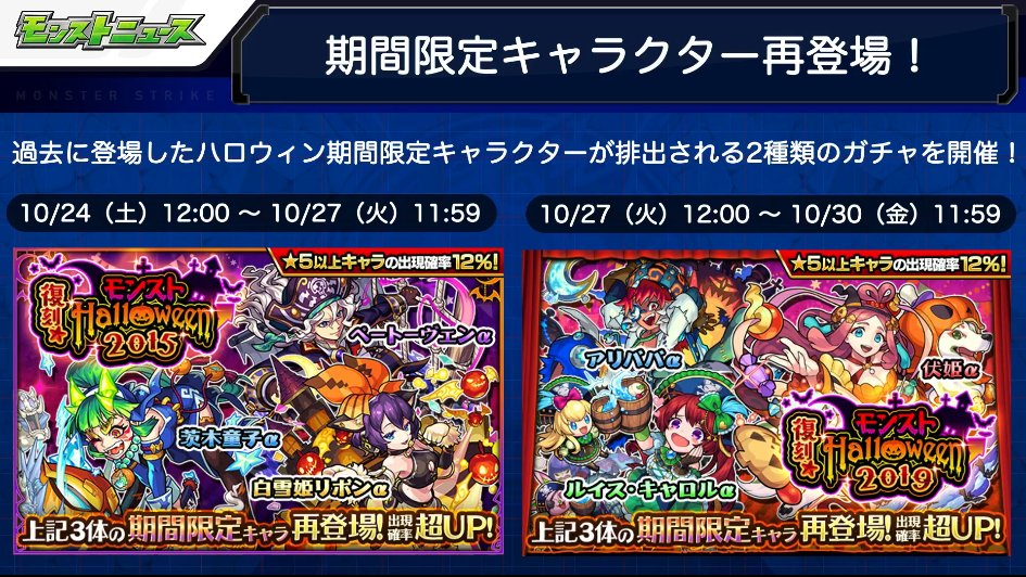 【モンスト】※歓喜※αキャラが!!!ハロウィン復刻ガチャ開催クル━━━━(゚∀゚)━━━━!! 2020/10/22 モンスト速報 モンスターストライクまとめ " " 続きを読む Source: モンスト速報 モンスターストライクまとめ