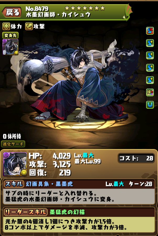 変身後:自分の攻撃力2倍追加、14コンボ以上→13コンボ以上