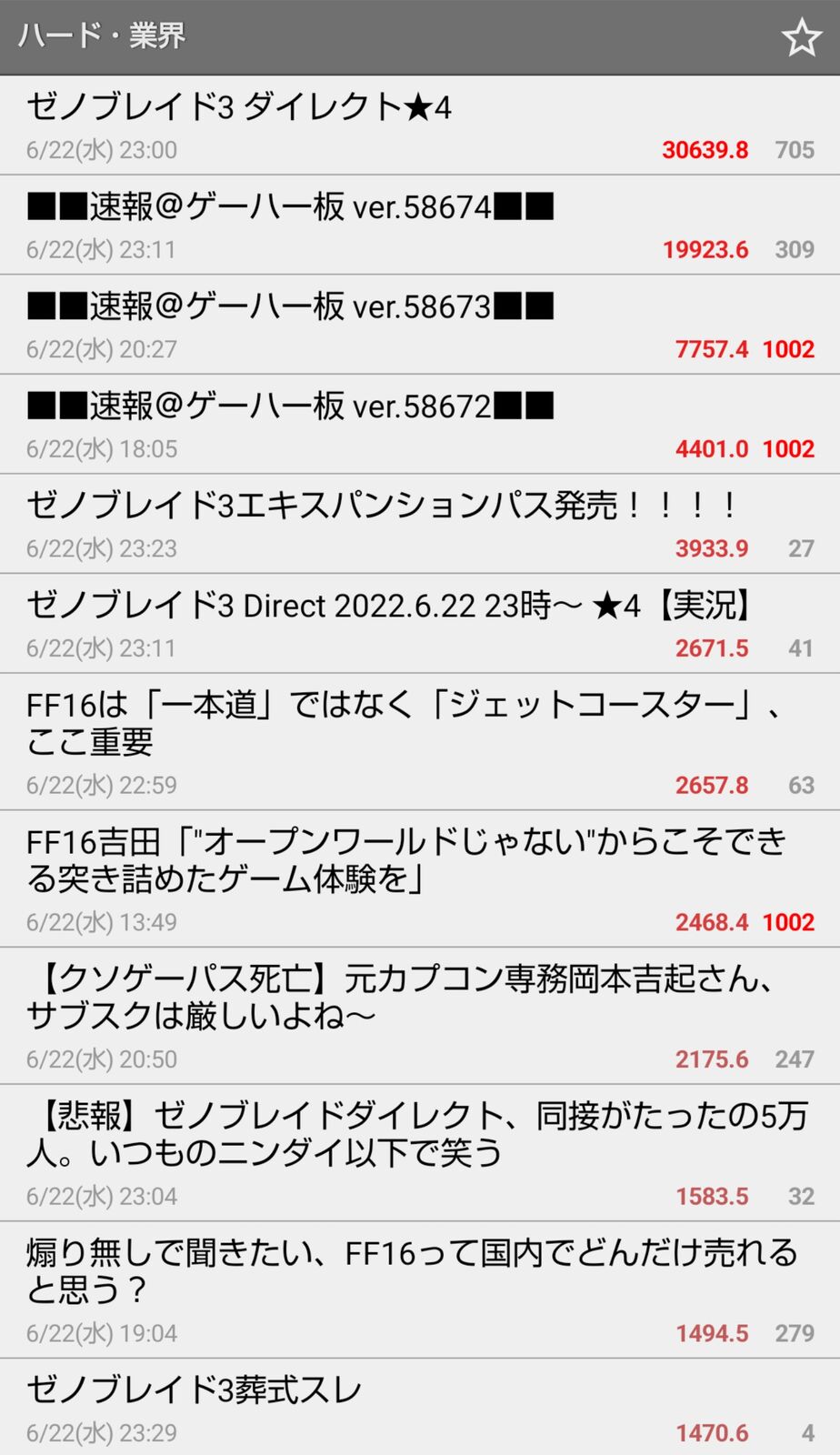 ゼノブレイド3の影響力やばすぎるwwwwww 2022/6/23 Y速報 " " 1: 2022/06/23(木) 11:08:38.29 ID:G8VmWrWO0 単独ダイレクトでこんだけ伸びたの初めて見たわ 続きを読む Source: Y速報