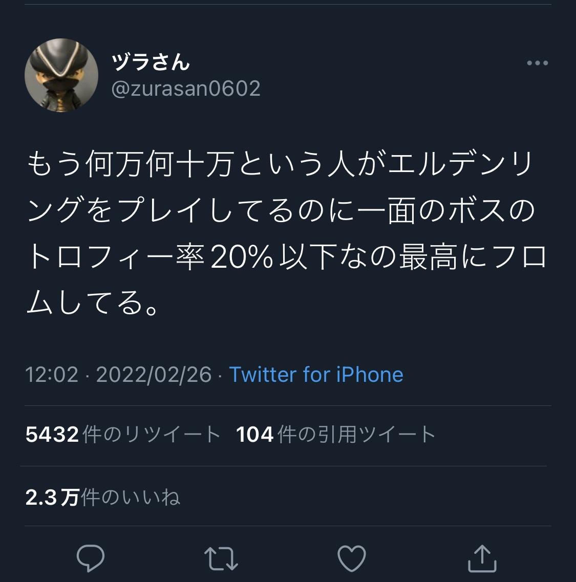 【エルデンリング】ゴドリック撃破率7割、ホーラルーまでに65%が脱落←これヤバいよな 2022/7/12 ダークソウルまとめ速報 " " 263: ID:4szLO3pv00707 トロフィー見たけどゴドリック撃破取ってるの7割しかないんだな30%はゴドリック前で脱落ホーラルーになると65%脱落してる如何に大多数の人にとってクソゲーだったかってことだな 続きを読む Source: ダークソウルまとめ速報