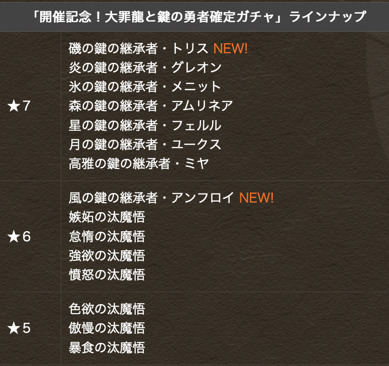 「開催記念!大罪龍と鍵の勇者確定ガチャ」登場!