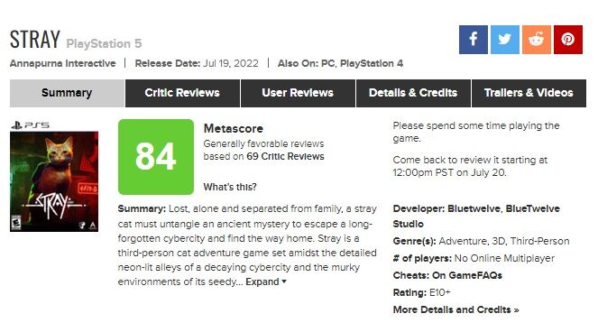 猫を操作するゲーム『Stray』、メタスコア84点の評価 2022/7/20 Y速報 " " 1: 2022/07/19(火) 01:16:41.79 ID:vrjaKo7X0 続きを読む Source: Y速報